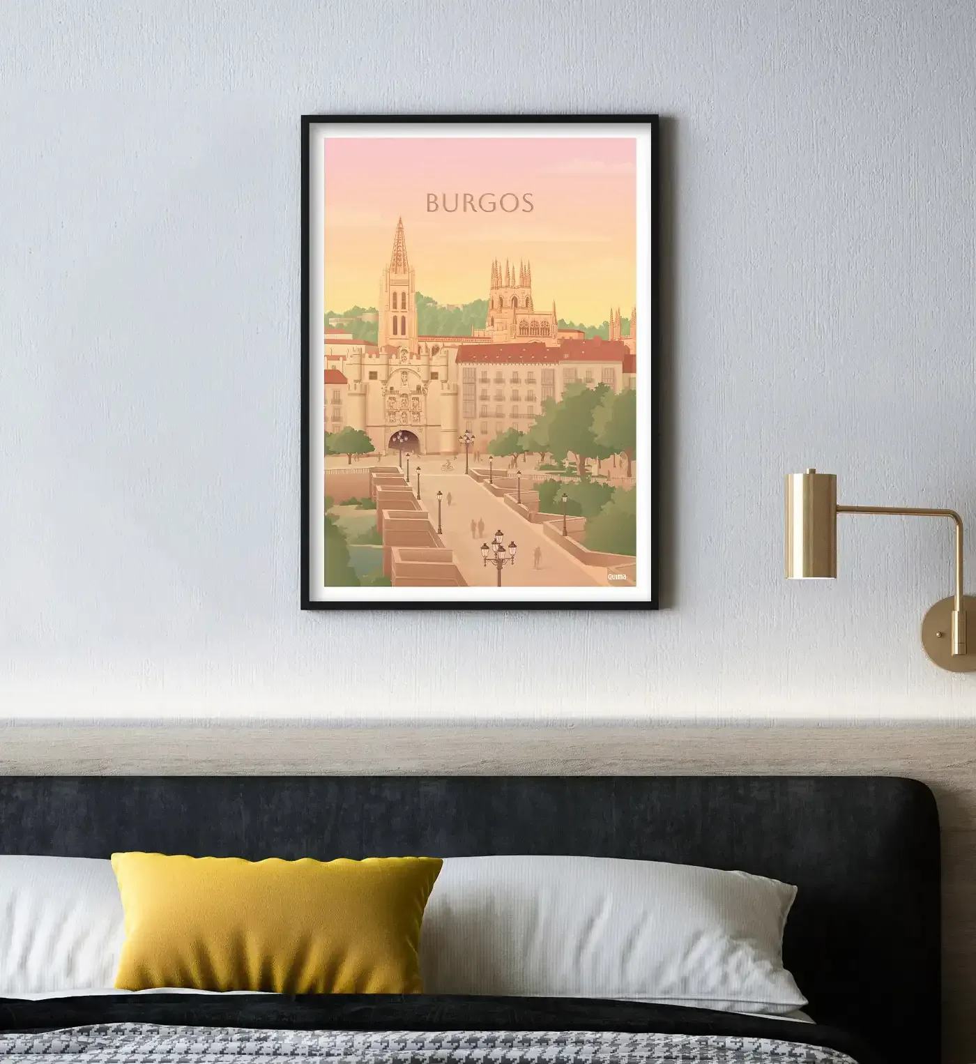 y con vistas impresionantes al Mar Cantábrico. Es un lugar de culto para surfistas de toda España y del extranjero. El contraste entre el verde de la vegetación cántabra y el azul del mar crea una estampa inolvidable que hemos querido representar en nuestra bonita lámina surfera de esta playa surfera.